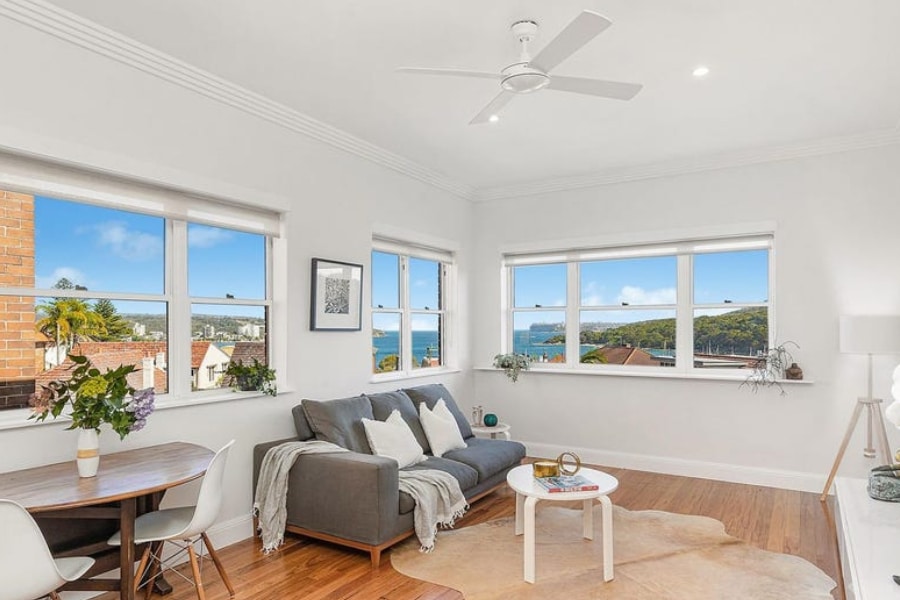 Situated in a gorgeous Art Deco block in the heart of Fairlight, within walking distance to Fairlight beach, this beautifully renovated apartment is bathed in northeast sunlight and enjoys water views across to North Head. Situated on the top floor of a boutique block of only 6, this newly renovated two-bedroom apartment is complete with combined living and dining rooms as well as a servery / bar at the lounge room window overlooking the ocean.